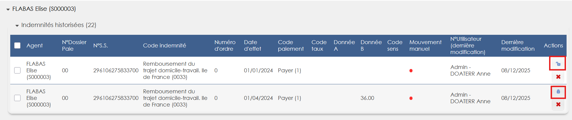 Une fois générés, les mouvements peuvent être verrouillés. Cette fonctionnalité peut être utilisée afin de confirmer que les mouvements à l’écran ont été vérifiés et peuvent être envoyés dans le GEST. Un mouvement verrouillé ne peux pas être supprimé.
