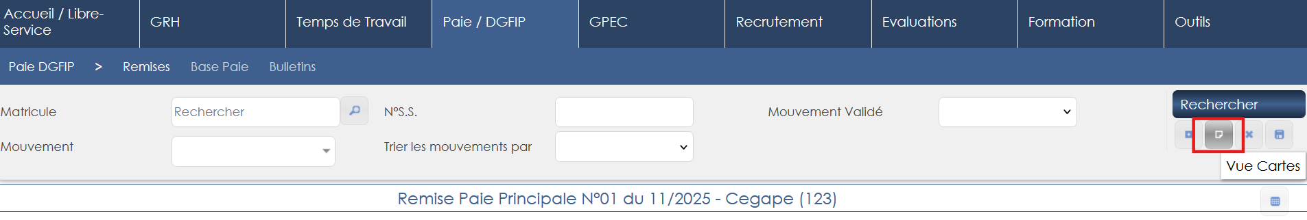 - Dans GRH > Livrets individuels > détails des livrets > Paie DGFiP > Remises, aller dans le détail de la remise