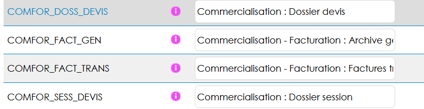 - Des types d’informations : à paramétrer dans l’écran Formation/Administration -> Commercialisation -> Types d’informations