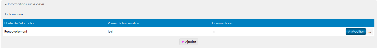 Dans le détail de chaque devis, il sera possible d’ajouter différentes informations telles que :
